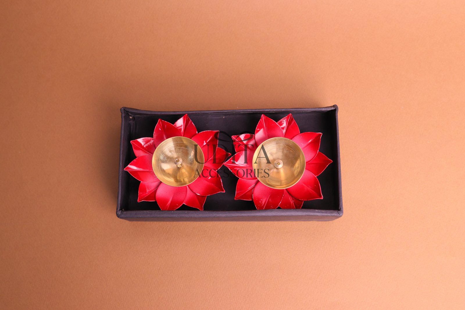 A set of handcrafted brass diyas shaped like blooming lotuses. Symbolizes prosperity and purity. Ideal for pooja rooms. Comes in