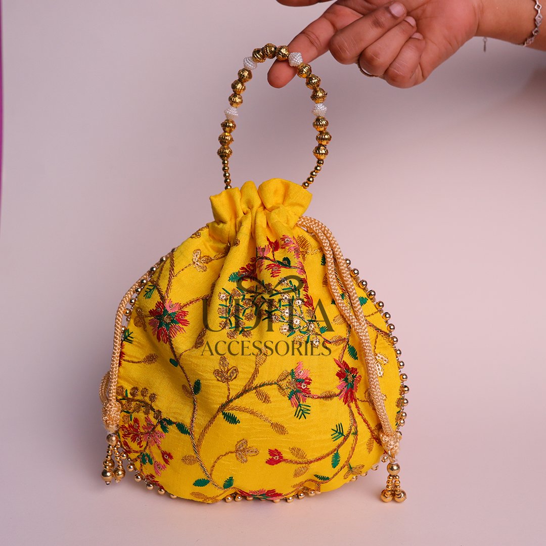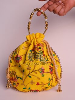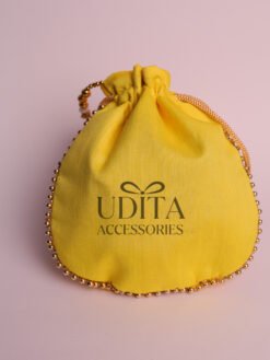 A stylish potli bag decorated with traditional embroidery.Perfect for gifting, wedding favors, or storing small essentials. Lightweight and easy to carry with drawstring closure.Adds a festive and ethnic charm to any outfit.A versatile accessory for all occasions.
