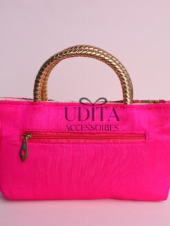 Trendy dark pink handle bag with premium fabric.Perfect for gifting, return gifts, or ethnic events.