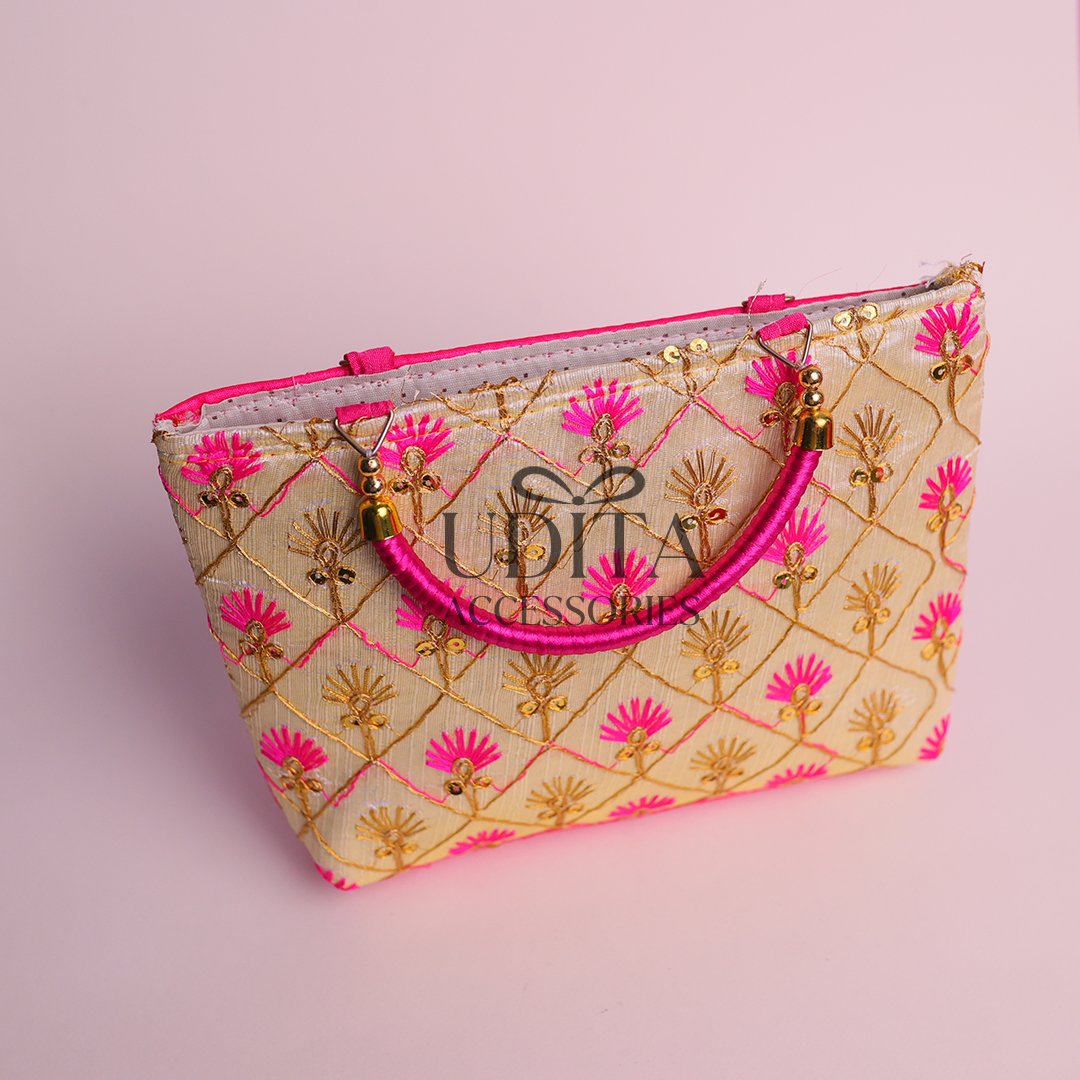 A stylish and durable half-white handbag with pink handles.Perfect for daily use, shopping, or gifting.Lightweight