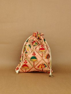 A unique umbrella-shaped potli designed with vibrant colors. Ideal for weddings, navratri, and festive gifting. Lightweight, spacious, and stylish. A standout accessory for special occasions.